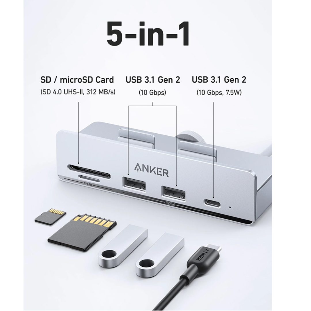 What You Get: Anker 535 USB-C Hub (5-in-1, for iMac), welcome guide, 18-month warranty.