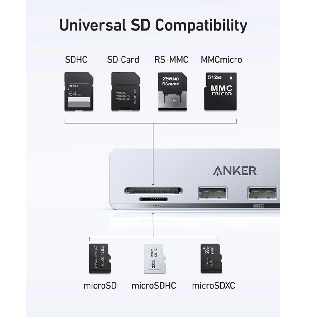 Transfer Files at High Speed: Both USB ports and the USB-C port support a maximum file transfer speed of 10 Gbps, while the SD and microSD card slots let you transfer your latest photos at up to 312 MB/s.