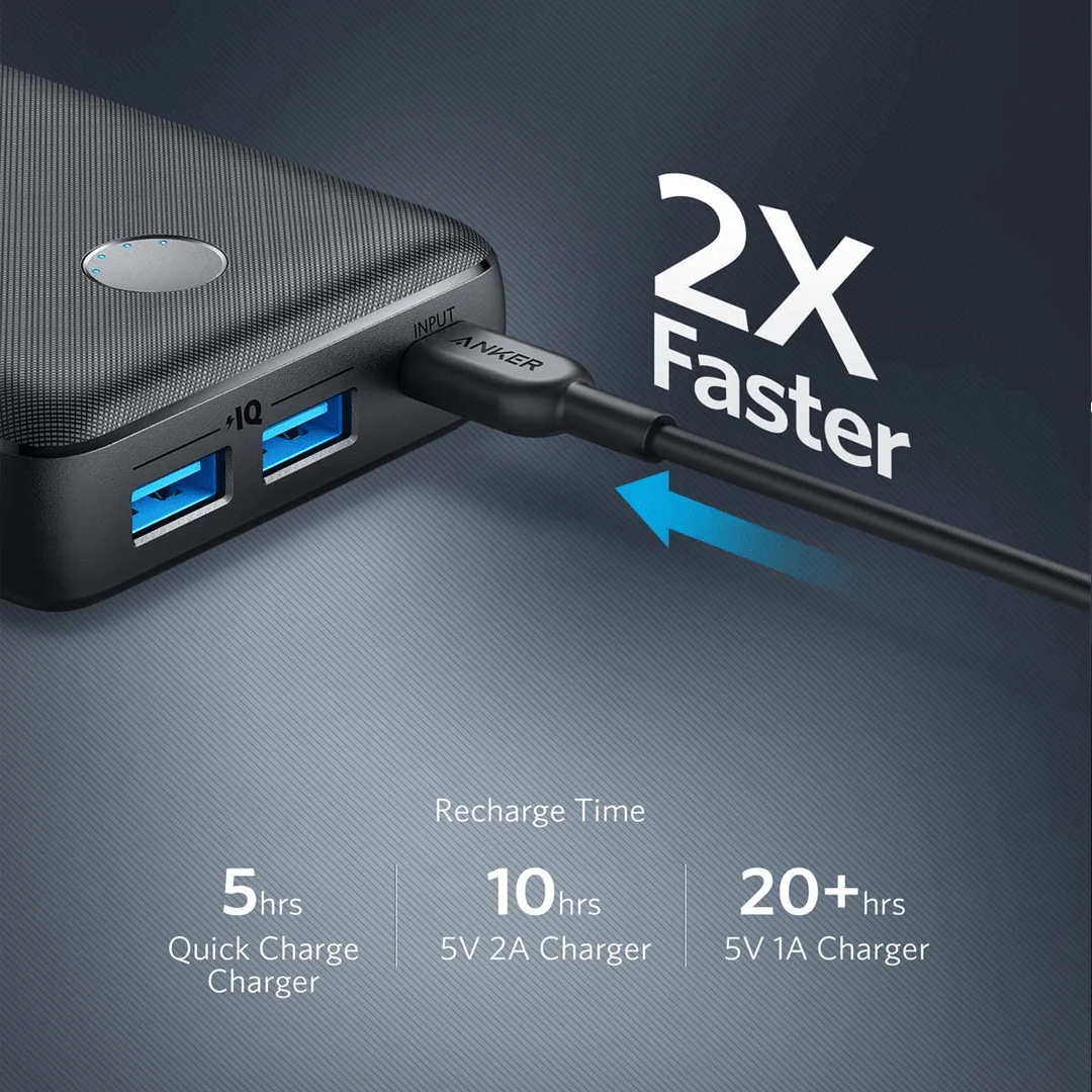 2 USB-A Ports: Anker's PowerIQ high-speed charging technology allows two devices to be charged at the same time.