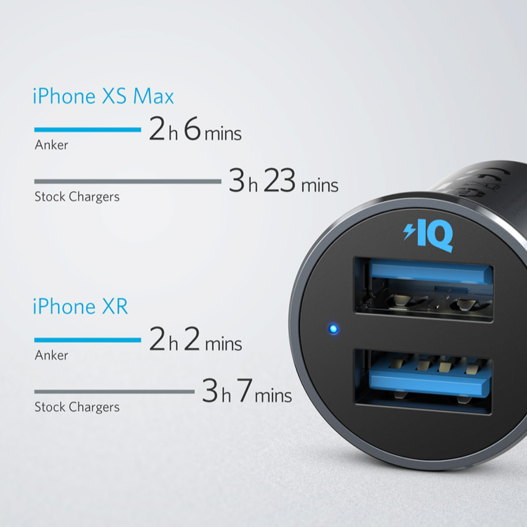 Anker Car Charger, Mini 24W Dual USB Car Charger, PowerDrive 2 Alloy Car Adapter with Blue LED for iPhone12/12 Pro/11/11 Pro/XR/Xs/Max/X, iPad Pro/Air 2/mini, Galaxy (Not Compatible with Quick Charge)